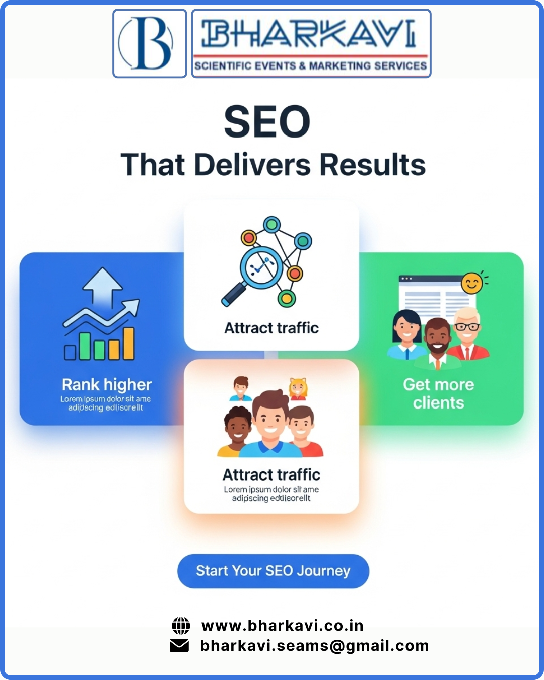 At Bharkavi Scientific Events & Marketing Services, we deliver complete digital marketing and creative design solutions that help brands grow online, engage audiences, and convert leads into customers. Our services combine strategy, creativity, and SEO-focused execution to ensure measurable results.